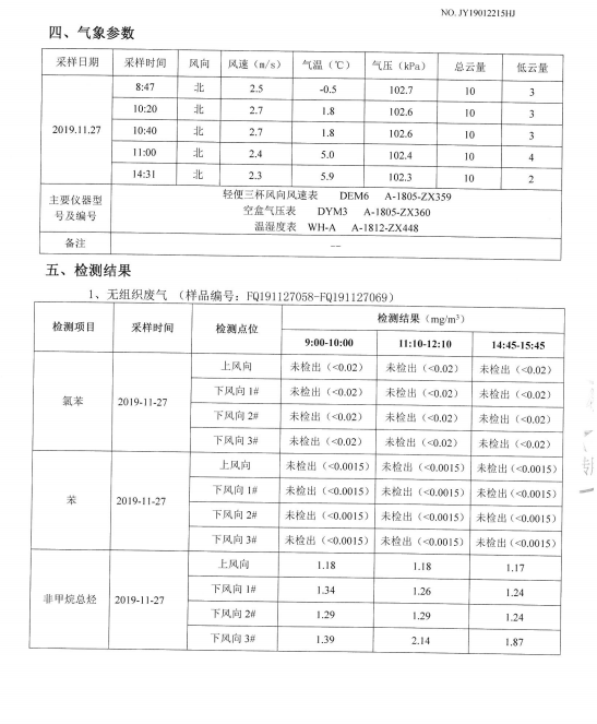 2019年4季度vocs检测结果 2019-12-27